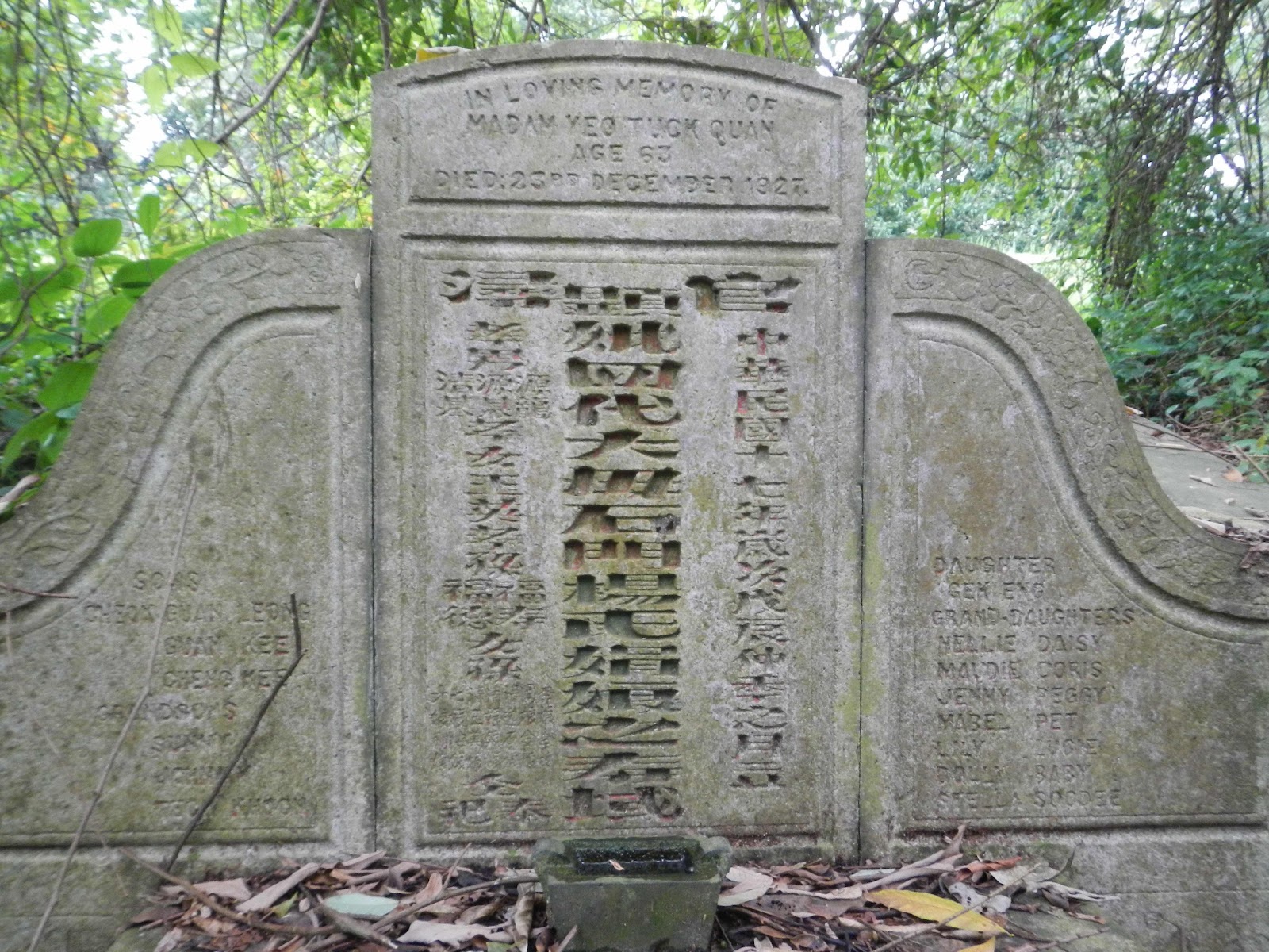 顕妣四代大母石門楊氏娟娘寿域 - "Longevity abode of the honored deceased fourth-generation great-grandmother, Mrs Cheok nee Madam Yeo Quan Neo