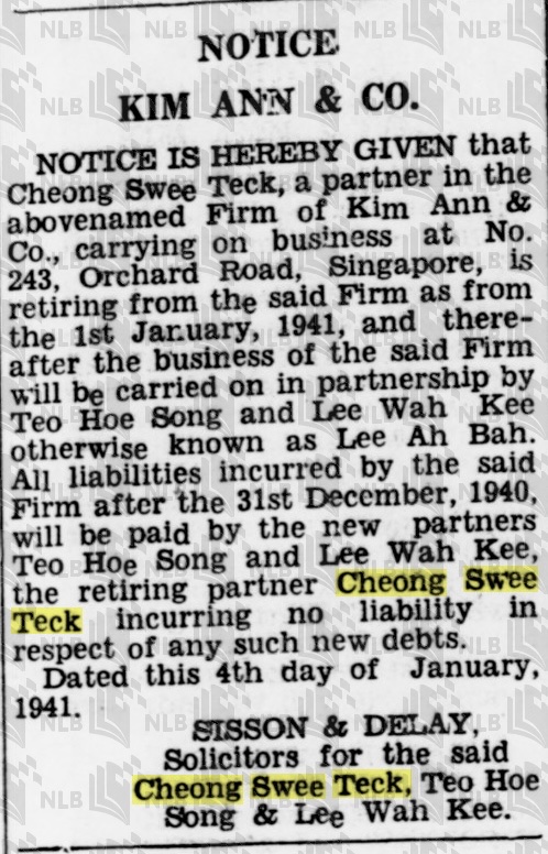 DEPARTURE OF MR. CHEONG KOON SENG.